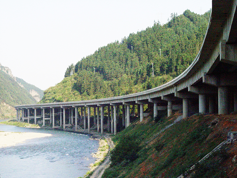 湖南省邵陽-懷化高速公路,公司承建土建工程6.32km,含洞口塘大橋(25*30 36 26 30 3*40 6*30簡支連續(xù)T梁)和洞口塘隧道一座。2005年建成。
