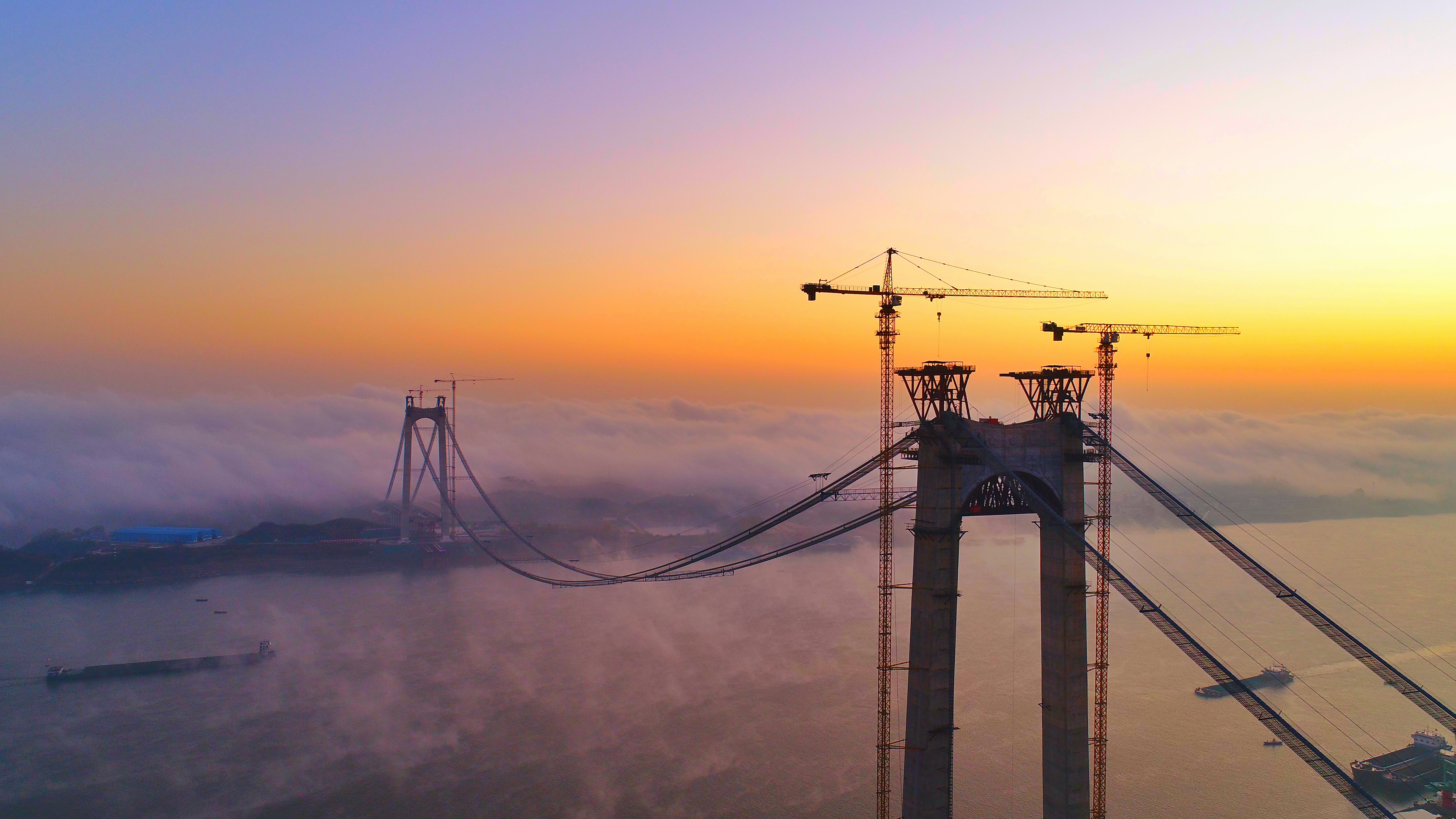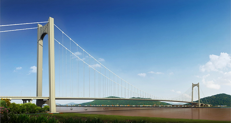 黃石棋盤洲長江公路大橋是武漢城市圈高速公路的重要組成部分,該項目起點位于陽新縣太子鎮(zhèn)樟樹灣村,順接擬建的黃咸高速公路大冶至陽新段,穿過規(guī)劃棋盤洲港區(qū)后跨越長江進(jìn)入黃岡市蘄春縣境內(nèi),在韓家灣與G50滬渝高速全互通相交,終點接滬渝高速。路線全長22.237km,黃石側(cè)接線14.247km,長江大橋3.728km,黃岡側(cè)接線4.262km。本項目投資估算總金額為39.363億元,建設(shè)總工期為48個月。2014年10月,湖北路橋中標(biāo)棋盤洲長公路大橋建設(shè)工程項目,2020年6月5日,大橋?qū)崿F(xiàn)順利合龍。