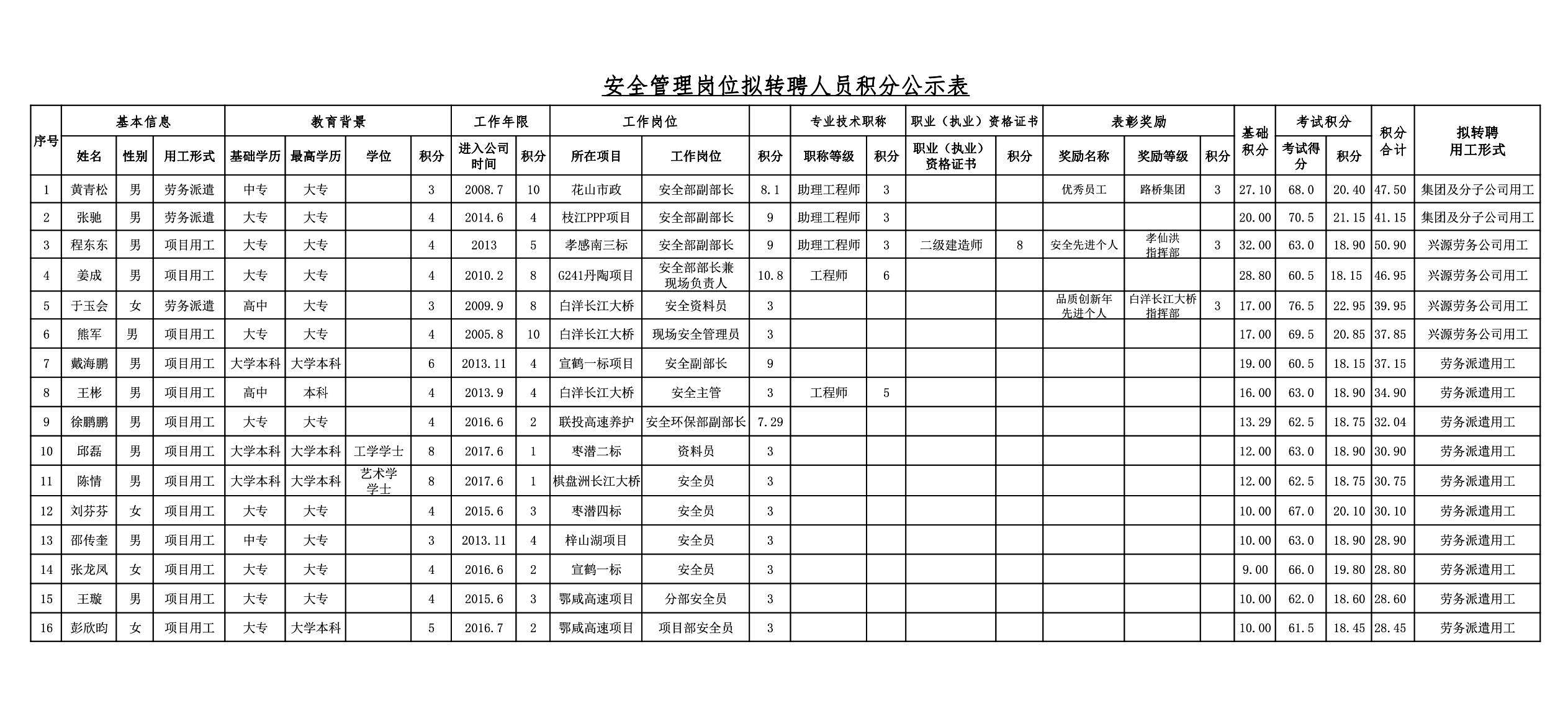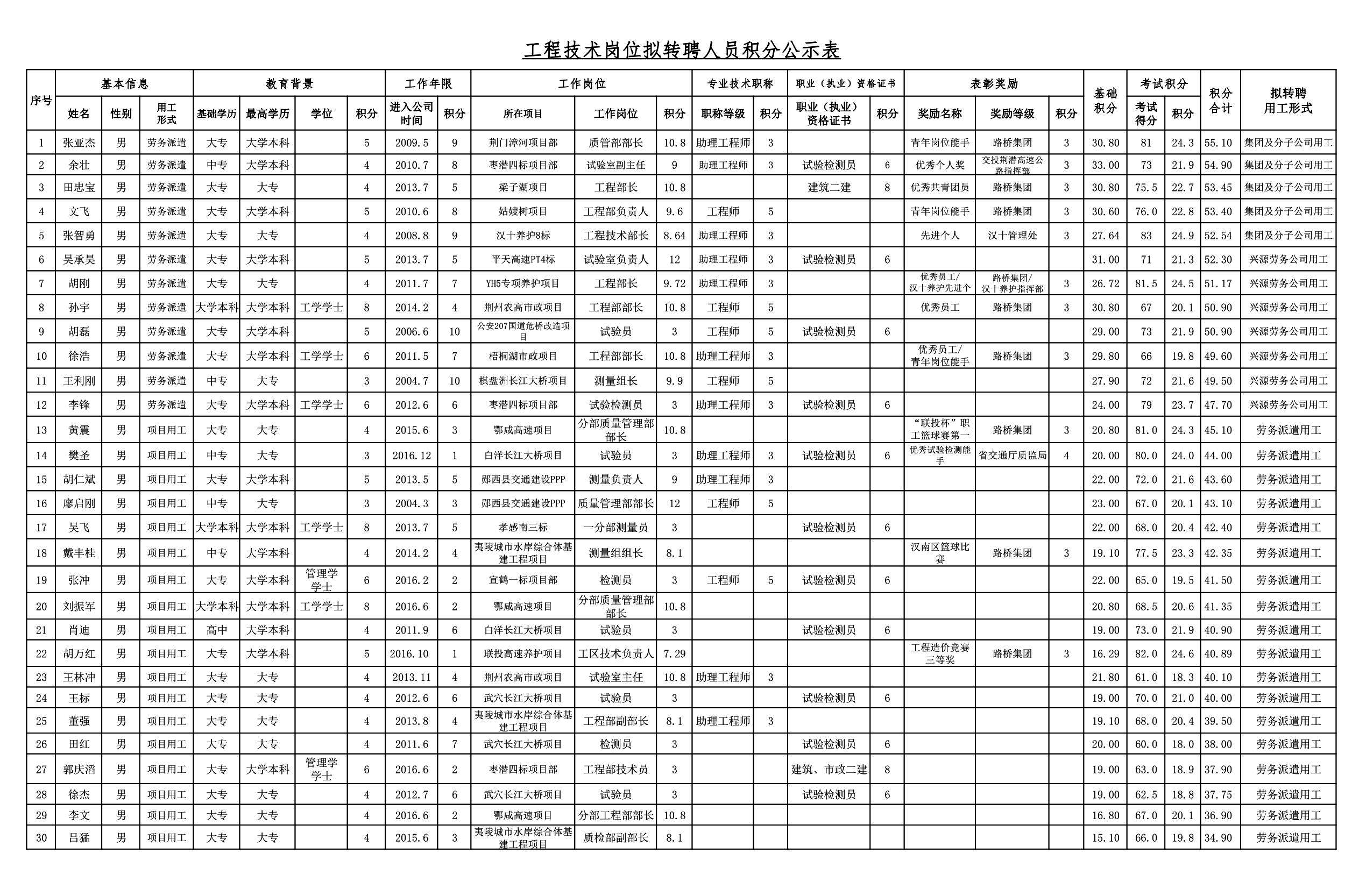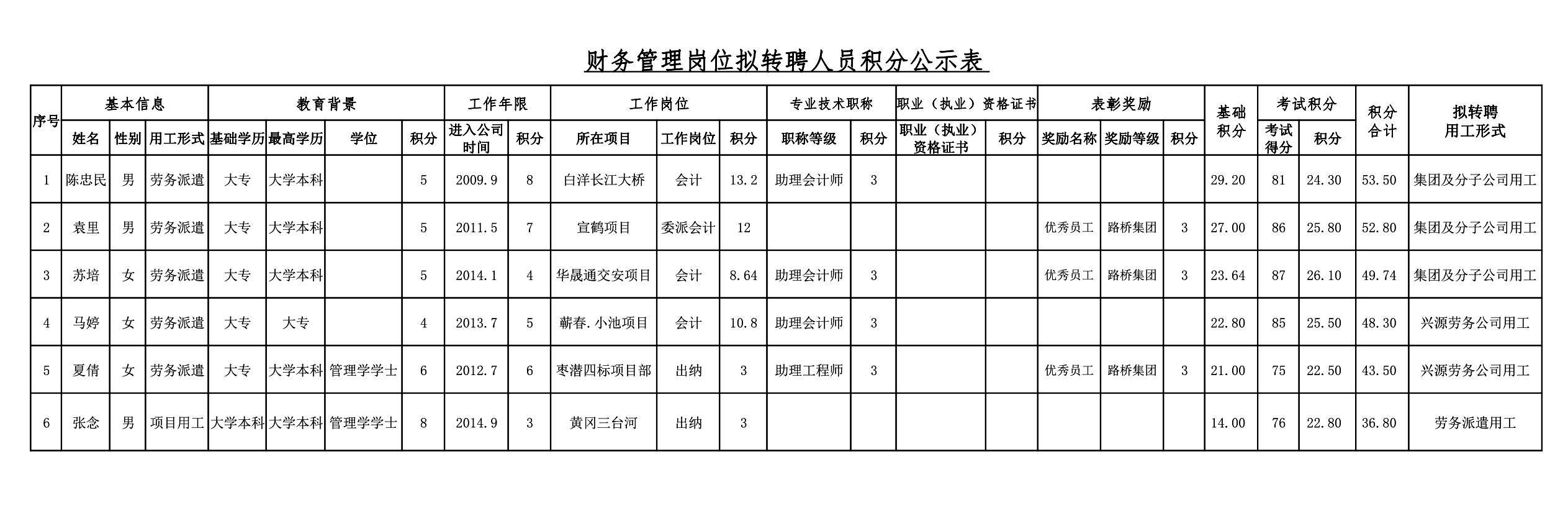 湖北路橋2018年關(guān)于擬轉(zhuǎn)聘人員的公示