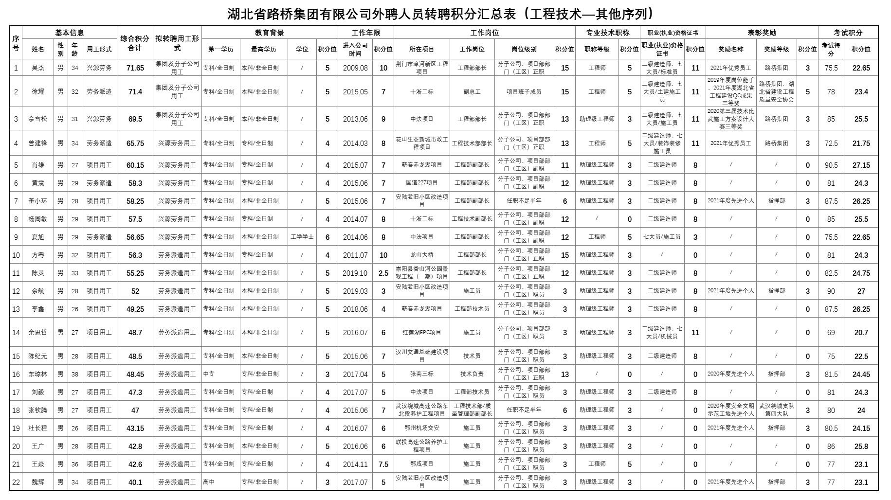 關(guān)于2022年湖北省路橋集團(tuán)外聘人員專業(yè)技術(shù)考試成績公布的通知