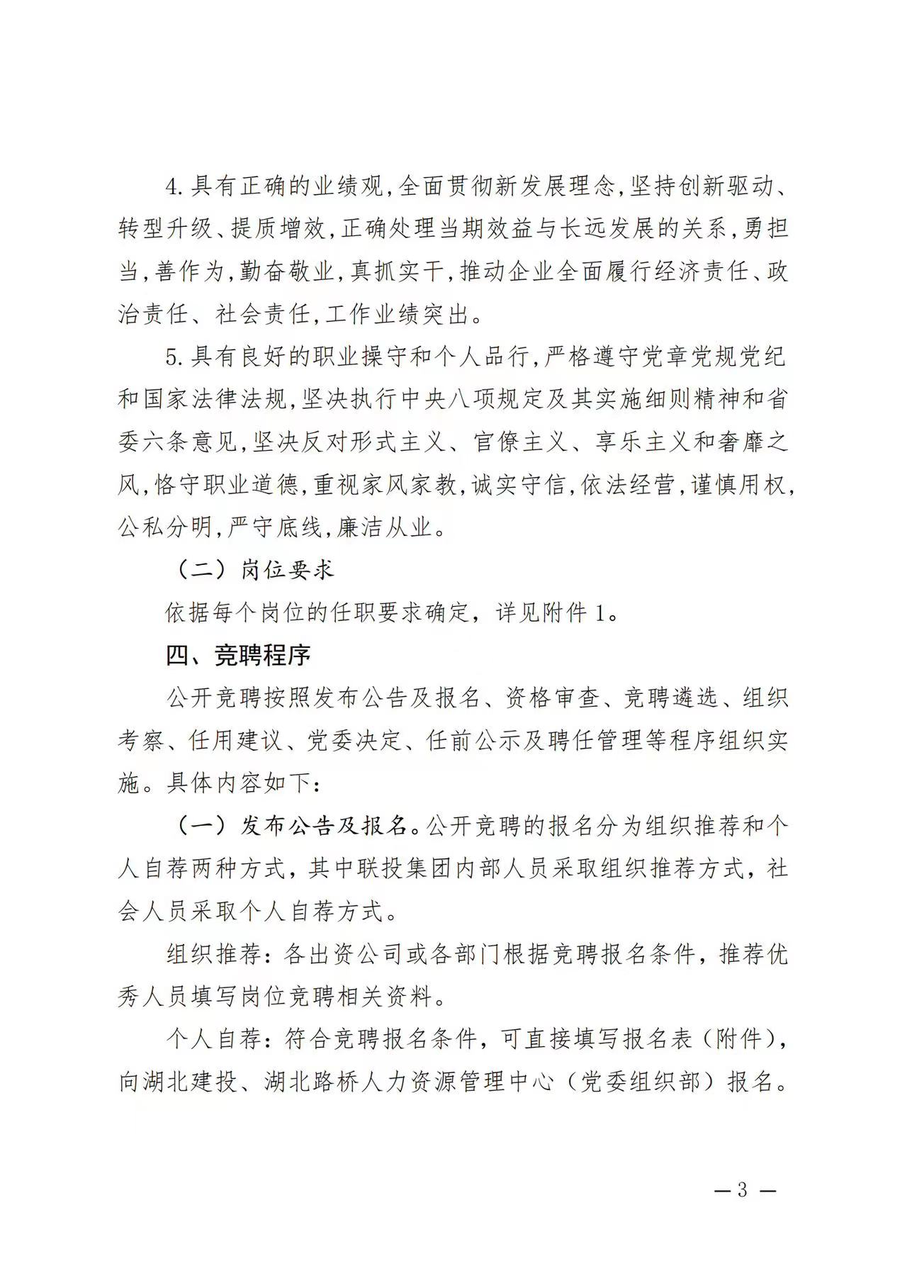 湖北省建設(shè)投資集團(tuán)有限公司、湖北省路橋集團(tuán)有限公司駐湖北聯(lián)投區(qū)域公司總部管理崗位公開競(jìng)聘報(bào)名初審公示