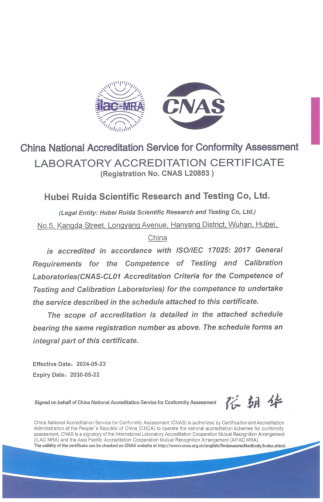近幾年,湖北路橋瑞達(dá)檢測(cè)公司積極致力于探索新賽道,持續(xù)加強(qiáng)軟硬件能力建設(shè)。此次取得CNAS實(shí)驗(yàn)室認(rèn)可證書(shū),標(biāo)志著瑞達(dá)檢測(cè)公司實(shí)驗(yàn)室的硬件設(shè)施、軟件條件及檢測(cè)能力均達(dá)到國(guó)際認(rèn)可水平,有效提升了瑞達(dá)檢測(cè)公司在檢測(cè)行業(yè)內(nèi)的核心競(jìng)爭(zhēng)力。湖北路橋瑞達(dá)檢測(cè)公司將繼續(xù)以匠心踐行初心,持續(xù)推進(jìn)質(zhì)量管理體系建設(shè),不斷培育新質(zhì)生產(chǎn)力,塑造發(fā)展新優(yōu)勢(shì),為企業(yè)改革轉(zhuǎn)型發(fā)展貢獻(xiàn)力量!