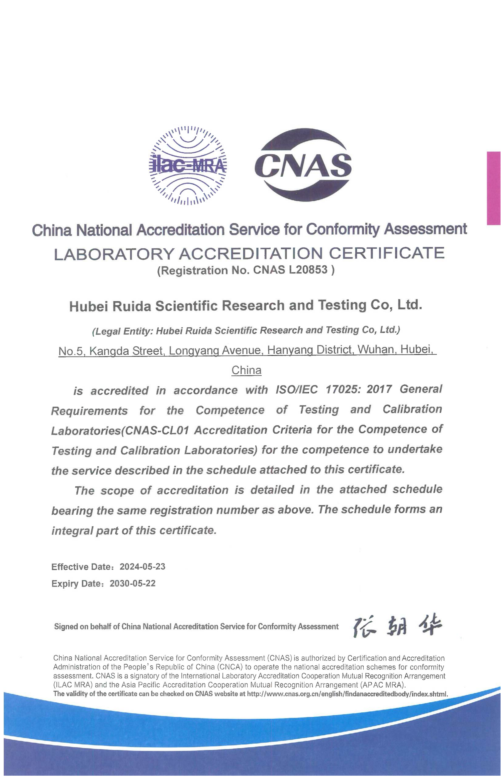 近日,湖北路橋瑞達(dá)檢測(cè)公司順利通過(guò)中國(guó)合格評(píng)定國(guó)家認(rèn)可委員會(huì)(CNAS)各級(jí)審核,取得“實(shí)驗(yàn)室認(rèn)可證書(shū)”,標(biāo)志著湖北路橋瑞達(dá)檢測(cè)公司首次躋身國(guó)家級(jí)認(rèn)可實(shí)驗(yàn)室行列,具備按照有關(guān)國(guó)際認(rèn)可準(zhǔn)則開(kāi)展檢測(cè)服務(wù)的能力。
