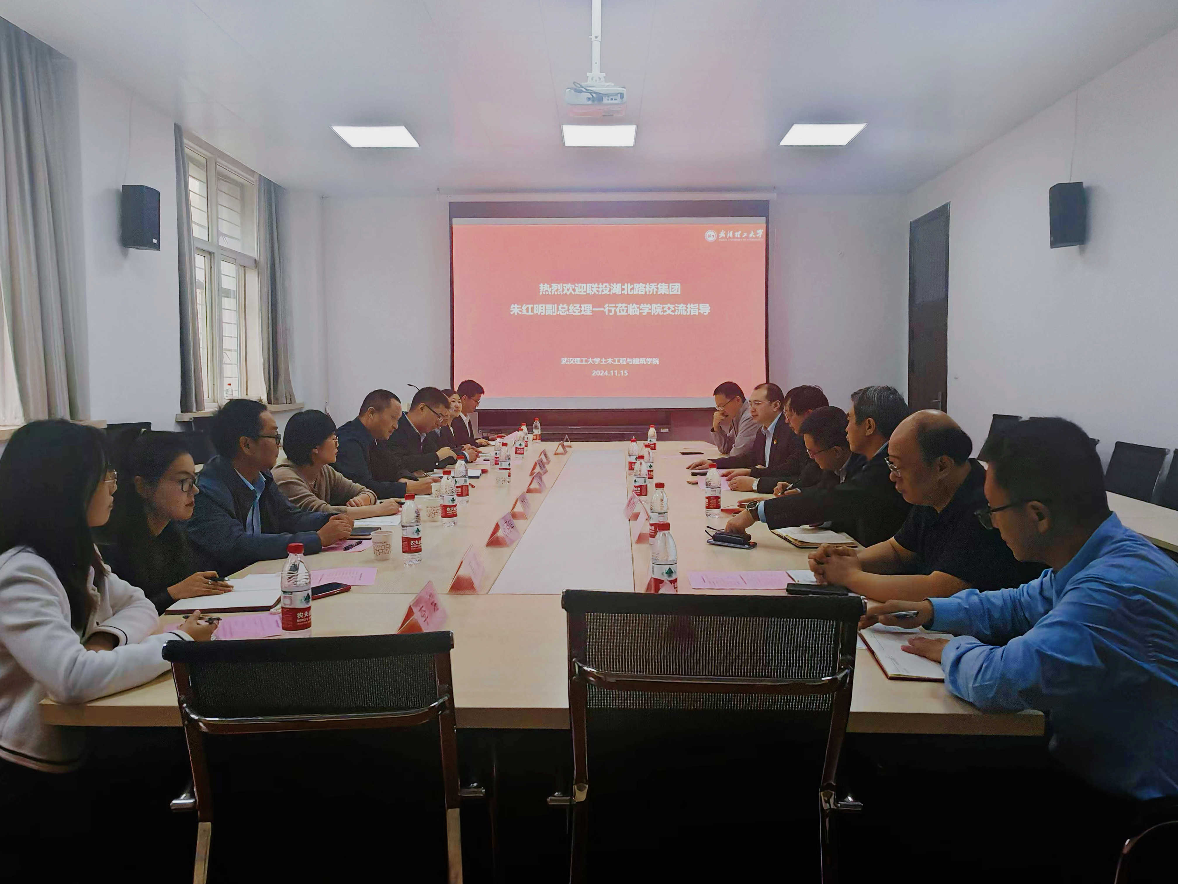 吳斌對湖北路橋一行的到來表示熱烈歡迎,并簡要介紹了土建學(xué)院發(fā)展歷史、學(xué)科建設(shè)、人才培養(yǎng)、科技創(chuàng)新等最新情況。他表示,近年來,學(xué)院在持續(xù)拓展科技成果轉(zhuǎn)化的新渠道、新途徑,湖北路橋作為省內(nèi)工程建設(shè)領(lǐng)域重點(diǎn)企業(yè),始終秉持開放合作的理念,積極與各高校建立“產(chǎn)學(xué)研”實(shí)踐基地。2018年,湖北路橋與武漢理工大學(xué)成功建立了“聯(lián)合人才培養(yǎng)實(shí)踐基地”,這一成果為雙方深化合作打下了堅(jiān)實(shí)的基礎(chǔ),當(dāng)前雙方共建“博士后創(chuàng)新實(shí)踐基地”和“卓越工程師”校企聯(lián)合培養(yǎng)項(xiàng)目,不僅是順勢而為,更是對既有合作模式的深化與升級,雙方要攜手促進(jìn)學(xué)術(shù)研究與產(chǎn)業(yè)實(shí)踐的深度融合與協(xié)同發(fā)展,不斷推動(dòng)行業(yè)技術(shù)進(jìn)步和產(chǎn)業(yè)升級,實(shí)現(xiàn)互利共贏的新局面。