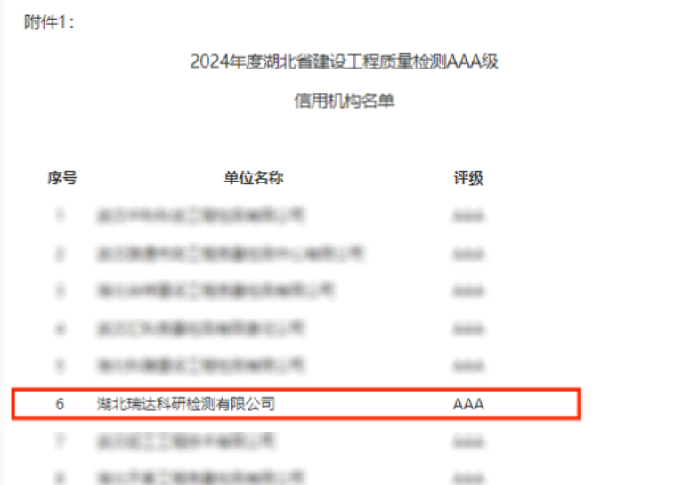1月8日,湖北省建設(shè)工程質(zhì)量安全協(xié)會(huì)發(fā)布了2024年度湖北省建設(shè)工程質(zhì)量檢測(cè)AAA級(jí)信用機(jī)構(gòu)評(píng)價(jià)結(jié)果,聯(lián)投湖北路橋瑞達(dá)科研檢測(cè)公司憑借優(yōu)異的誠信建設(shè)和信用管理能力,榮獲最高級(jí)“AAA級(jí)”信用機(jī)構(gòu)評(píng)價(jià)。