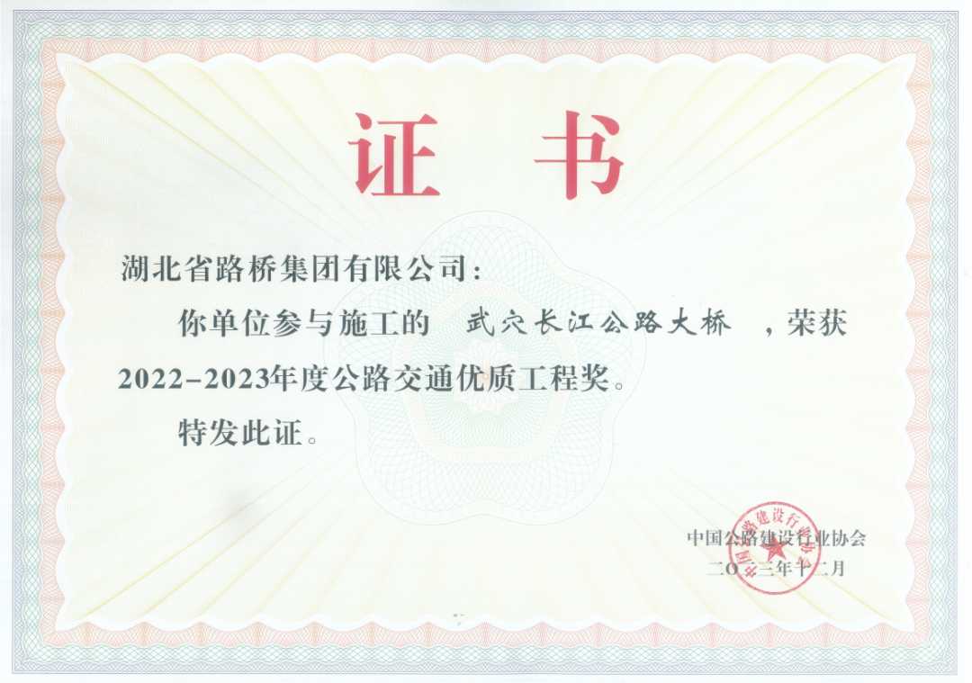 此外,湖北路橋一直致力于推動公路建設(shè)行業(yè)進(jìn)步,并以積極開放的姿態(tài),深度參與行業(yè)協(xié)會各項(xiàng)工作。在中國公路建設(shè)行業(yè)協(xié)會的大力支持和指導(dǎo)下,湖北路橋憑借深厚的技術(shù)積累、不懈的創(chuàng)新精神以及對工程質(zhì)量的嚴(yán)格把控,取得了令人矚目的成績。15項(xiàng)工法在中國公路建設(shè)行業(yè)協(xié)會評為2024年度公路工程工法,宜都長江公路大橋、武穴公路長江大橋榮獲2022-2023年度公路交通優(yōu)質(zhì)工程獎(李春獎)的殊榮。