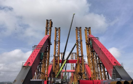 目前,水都二橋工程全橋下部結(jié)構(gòu)、引橋上部混凝土主體結(jié)構(gòu)和主橋主梁鋼結(jié)構(gòu)全部完成,正在進行鋼拱肋拼裝、引橋附屬設(shè)施工作,項目計劃五月中旬前完成第三跨鋼拱肋提升工作,七月份左右完成全橋鋼拱肋安裝提升、主橋UHPC施工、附屬設(shè)施等工作。水都二橋建成后,將與水都大橋配合協(xié)調(diào)使用,對改善丹江口市交通環(huán)境,具有非常重要的意義。湖北路橋?qū)⒓哟筚Y源投入,合理組織、精心安排,爭取水都二橋工程早日建成通車。