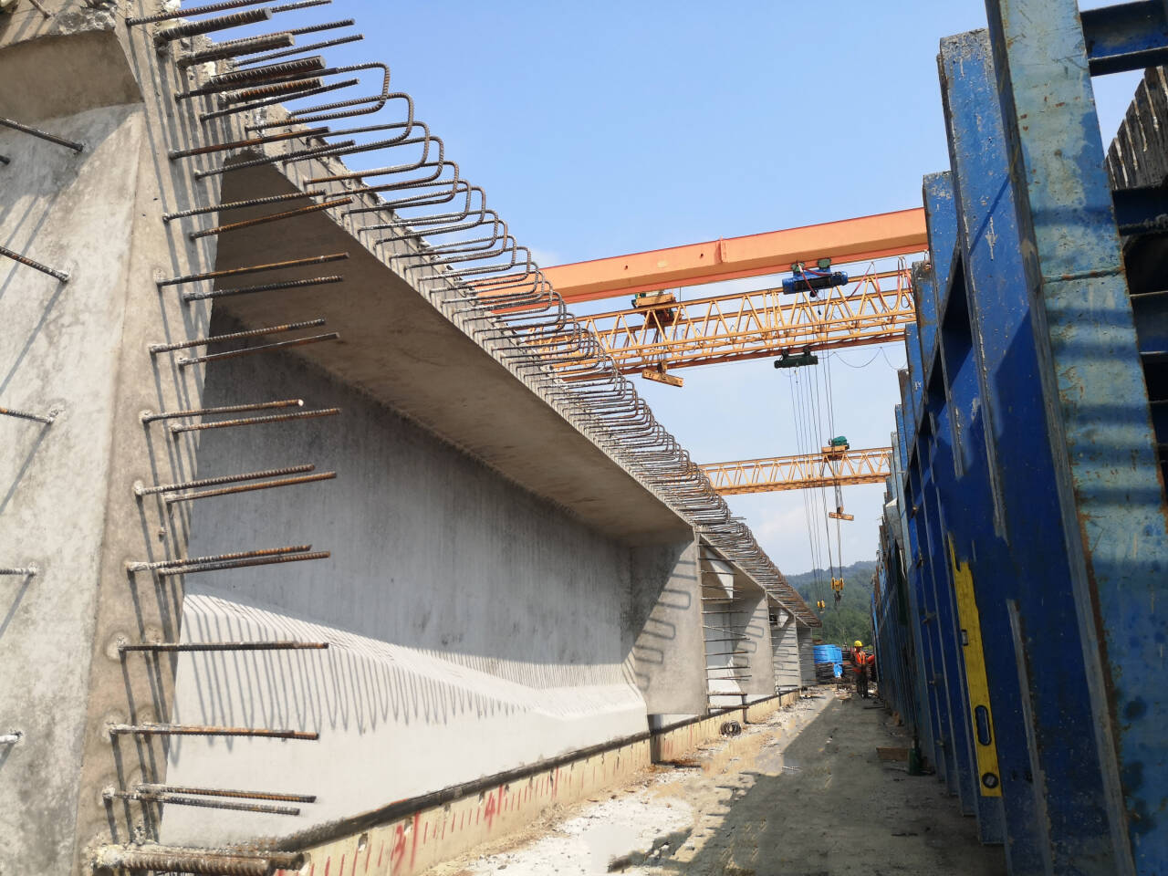 為確保首片預(yù)制T梁順利澆筑,項(xiàng)目團(tuán)隊(duì)精心組織、科學(xué)安排、統(tǒng)籌規(guī)劃,并在首片T梁澆筑前,對(duì)制梁鋼筋加工定位安裝綁扎、模板打磨與拼裝、混凝土澆筑養(yǎng)護(hù)及梁體張拉壓漿工藝等環(huán)節(jié)進(jìn)行嚴(yán)格管控。在澆筑過程中,項(xiàng)目團(tuán)隊(duì)嚴(yán)把安全質(zhì)量關(guān),嚴(yán)格遵守各項(xiàng)施工技術(shù)規(guī)范,確保T梁澆筑成品內(nèi)實(shí)外美。